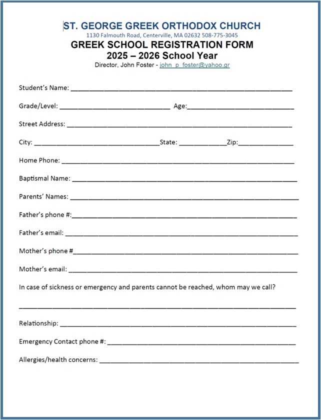 The Greek School follows the calendar of Barnstable County schools. For more information, please contact the Church office.